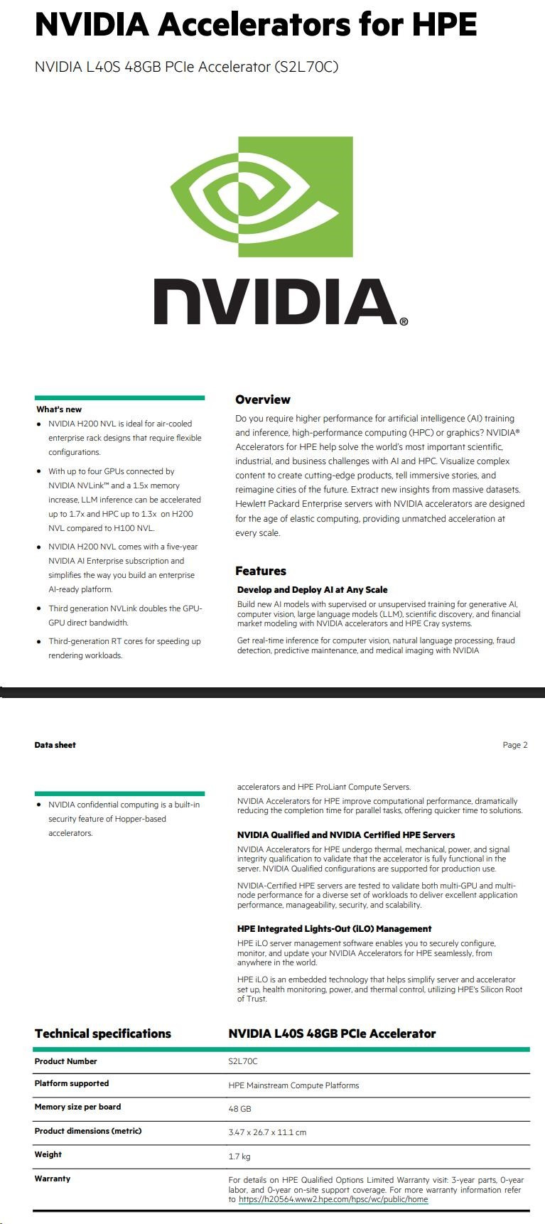 NVIDIA L40S 48GB PCIe Accelerator for HPE RENEW S2L70CR.
