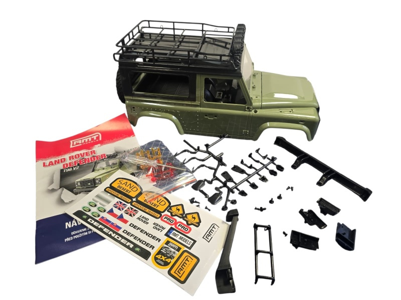Olivová karoserie Land Rover RMT 1:12- se světelnou rampouModel obsahuje doplňky karoserie a dlouhou střechu se světelnou rampou.Součástí karoserie je kabel napájení a kabel pro světelnou rampu.Délka modelu je 33 cm, šířka 15cm, rozvor náprav 19,5 cm, rozchod 13 cm. Věnujte prosím plnou pozornost tomu jakou verzi Land roveru vlastníte.Díl je vhodný pro:RC modelpoznávací znakydalší poznávací znakyRMT Land Rover Adventure- bez samolepky RMT Land Rover Trail- bez samolepky RMT Land Rover T98- bez samolepky RMT Land Rover Adventure V2.0- kulatá samolepka RMT- u zadní nápravy ve spodní části modeluRMT Land rover Trail V2.0- kulatá samolepka RMT- v bateriovém prostoru pod akumulátoremRMT Land Rover T98 V2.0- kulatá samolepka RMT- v bateriovém prostoru pod akumulátorem Obsah balení: Karoserie Doplňky Samolepky