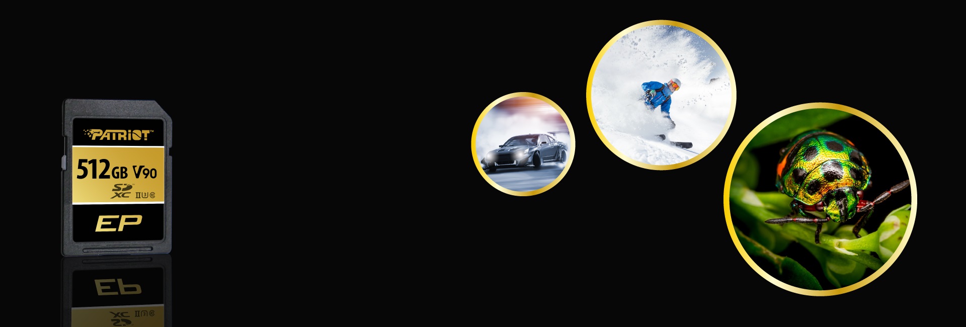 Karta SD Patriot V90 optimalizuje výkon díky rychlému čtení až 300 MB/s a zápisu až 260 MB/s. Karta V90 si snadno poradí se záběry v rozlišení 4K/8K Ultra-HD, záběry v sériovém režimu a vysoce výkonným záznamem videa.