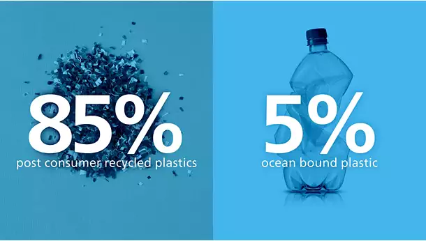 BĂ˝t ekologickĂ˝ znamená opÄ›tovnÄ› vyuĹľĂvat starĂ© materiály. Proto je tento monitor Philips vyrobenĂ˝ z 85 % recyklovanĂ˝ch plastĹŻ po spotĹ™ebitelĂch a 5 % plastĹŻ směřujĂcĂch do oceánu.