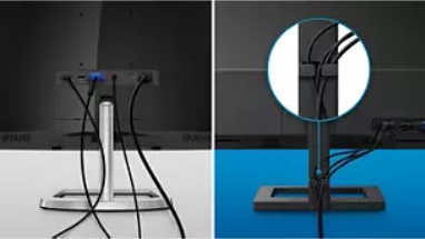 Uspořádání kabeláže s detailním provedením udržuje pořádek na pracovním místě uspořádáním kabelů potřebných pro provoz zobrazovacího zařízení.
