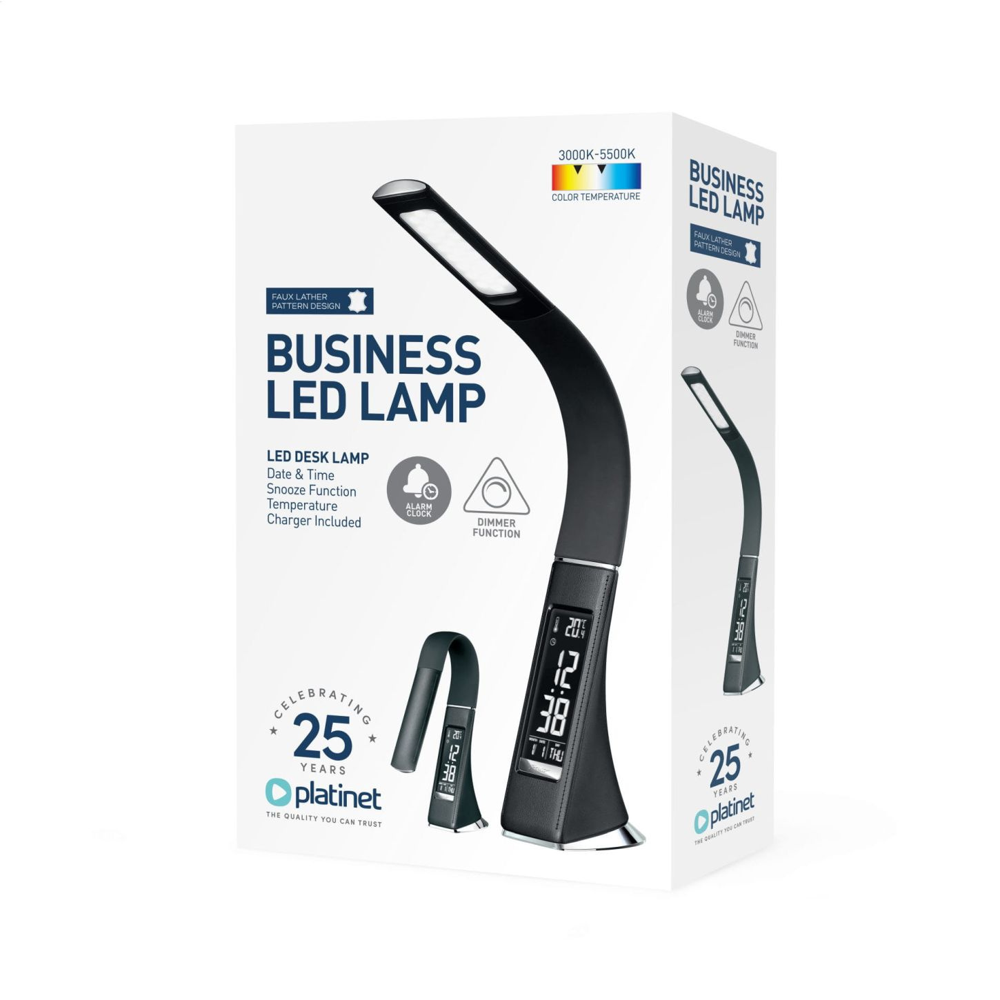 Platinet PDLU3B stolní LED lampa stmívatelná, flexibilní rameno, hodiny, černá