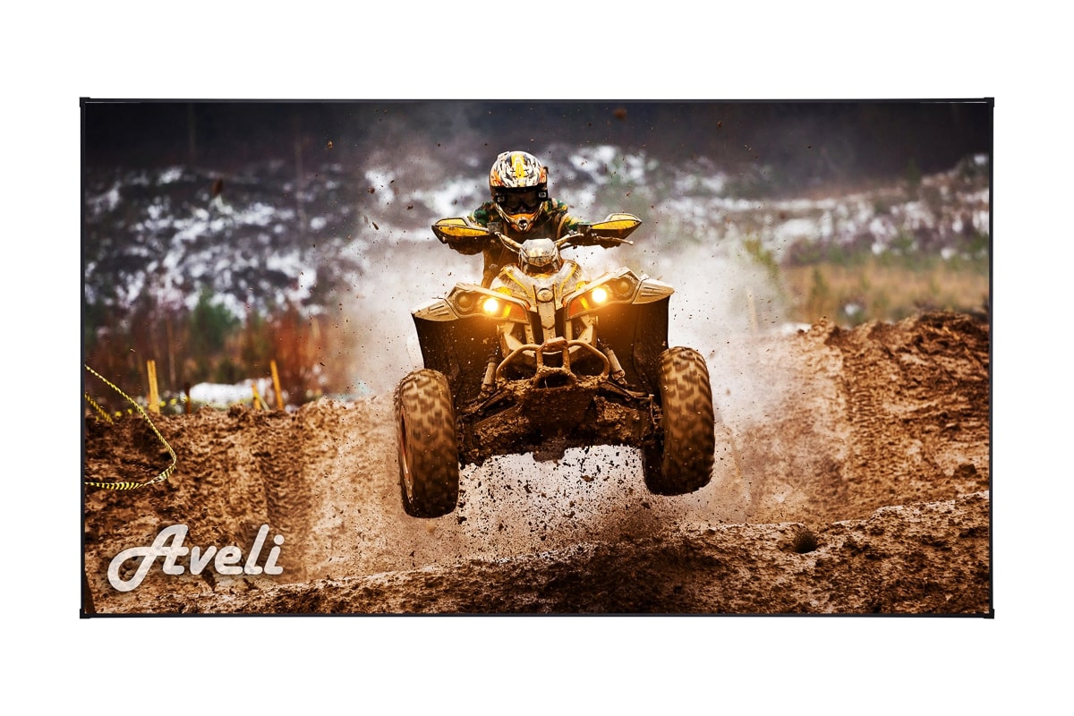 Projekční plátno AVELI PREMIUM v pevném rámu, vhodné pro přímou projekci. Vhodné pro projektory se světelným výkonem 4000 ANSI a vyšší. Využití plátna je univerzální.