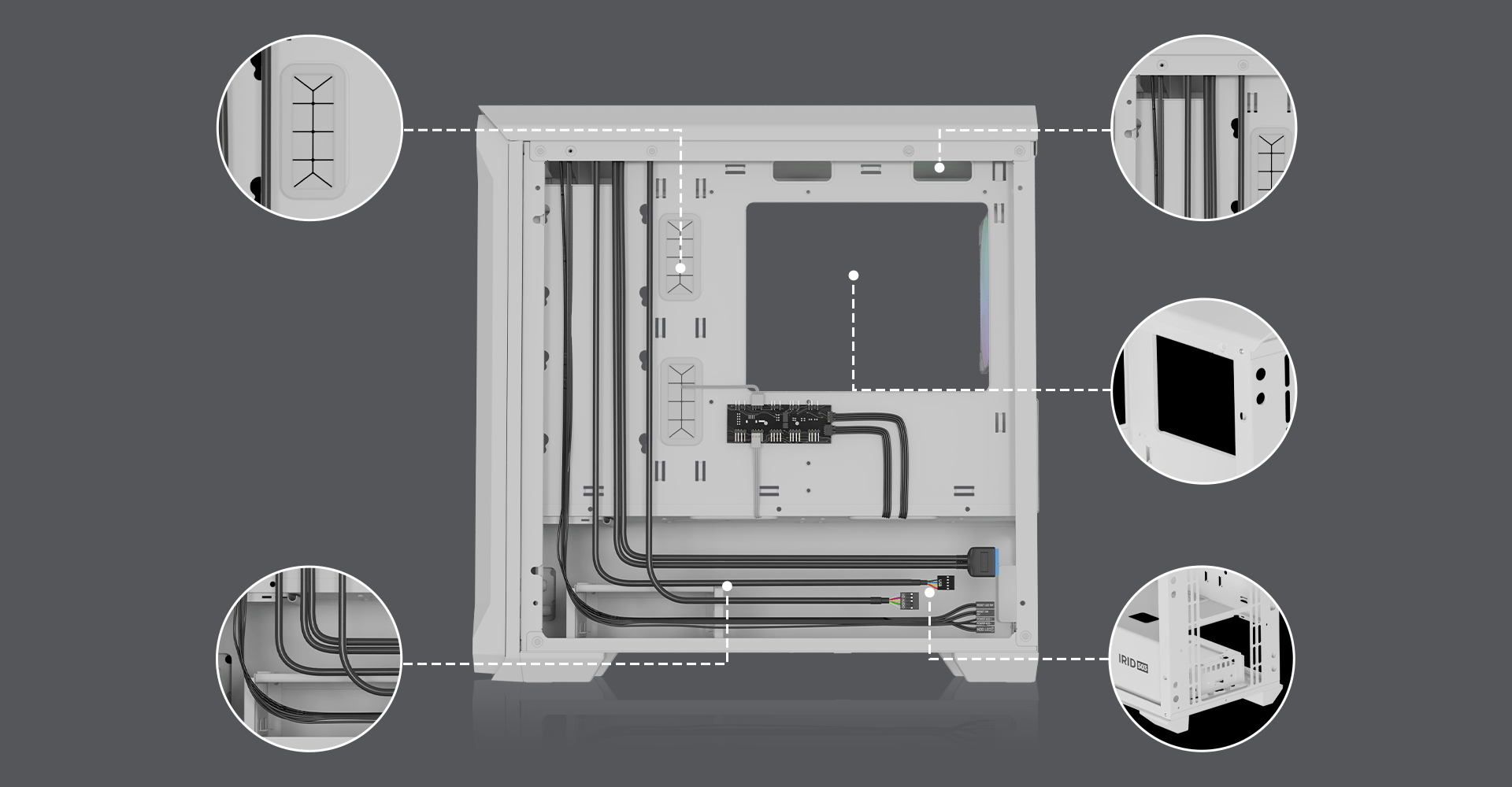 Irid 503 ARGB LITE má perforovanou pĹ™ednĂ stranu a boÄŤnĂ panel je vyroben z ÄŤirĂ©ho tvrzenĂ©ho skla. Toto Ĺ™ešenĂ umoĹľnĂ na prvnĂ pohled vidÄ›t pracovnĂ komponenty. Varianta LITE je takĂ© vybavena jednĂm ventilátorem OXAL ARGB 120, kterĂ˝ zajišťuje podporu dostateÄŤnĂ© cirkulace vzduchu uvnitĹ™ skĹ™ĂnÄ›.