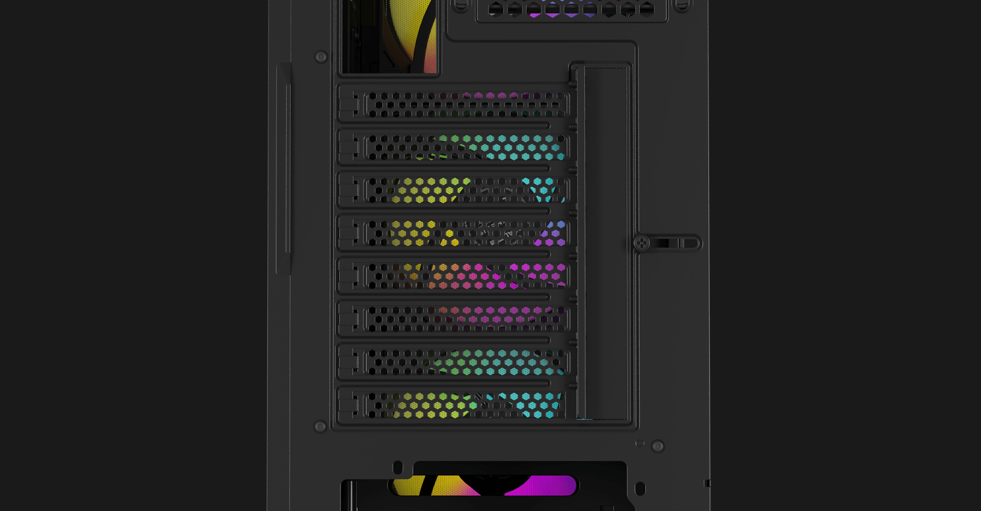Rozšiřující zásuvky mají šroubovací krytky, a lze je tedy znovu sestavit. Otevřete pouze to, co potřebujete, a když zůstane slot prázdný, našroubujte jej. S Irid 505 V2 ARGB by mělo vše vždy vypadat úhledně a úžasně. Využijte boční panel z tvrzeného skla a podívejte se na funkční komponenty!