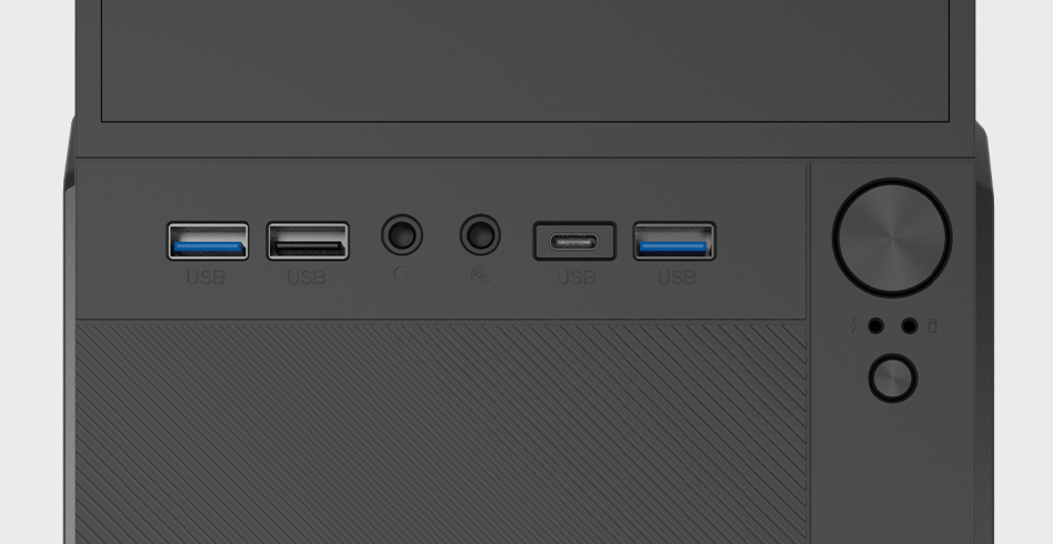 Chcete přenášet data rychleji než dříve? Využijte slot USB C 3.1, který nabízí 2× rychlejší přenos dat (10 Gbit/s) ve srovnání s USB 3.0 (5 Gbit/s). Přední panel vám navíc usnadní i připojení dalšího příslušenství. To vše díky 3 dalším portům USB typu A (2 × USB 3.0 a 1 × USB 2.0) a 2 miniaturním konektorům pro sluchátka a také mikrofon. Šetřete čas a pracujte efektivněji.