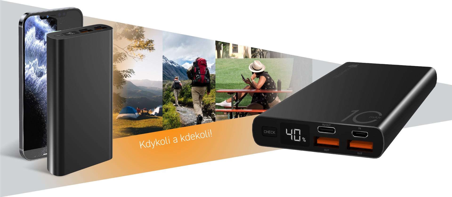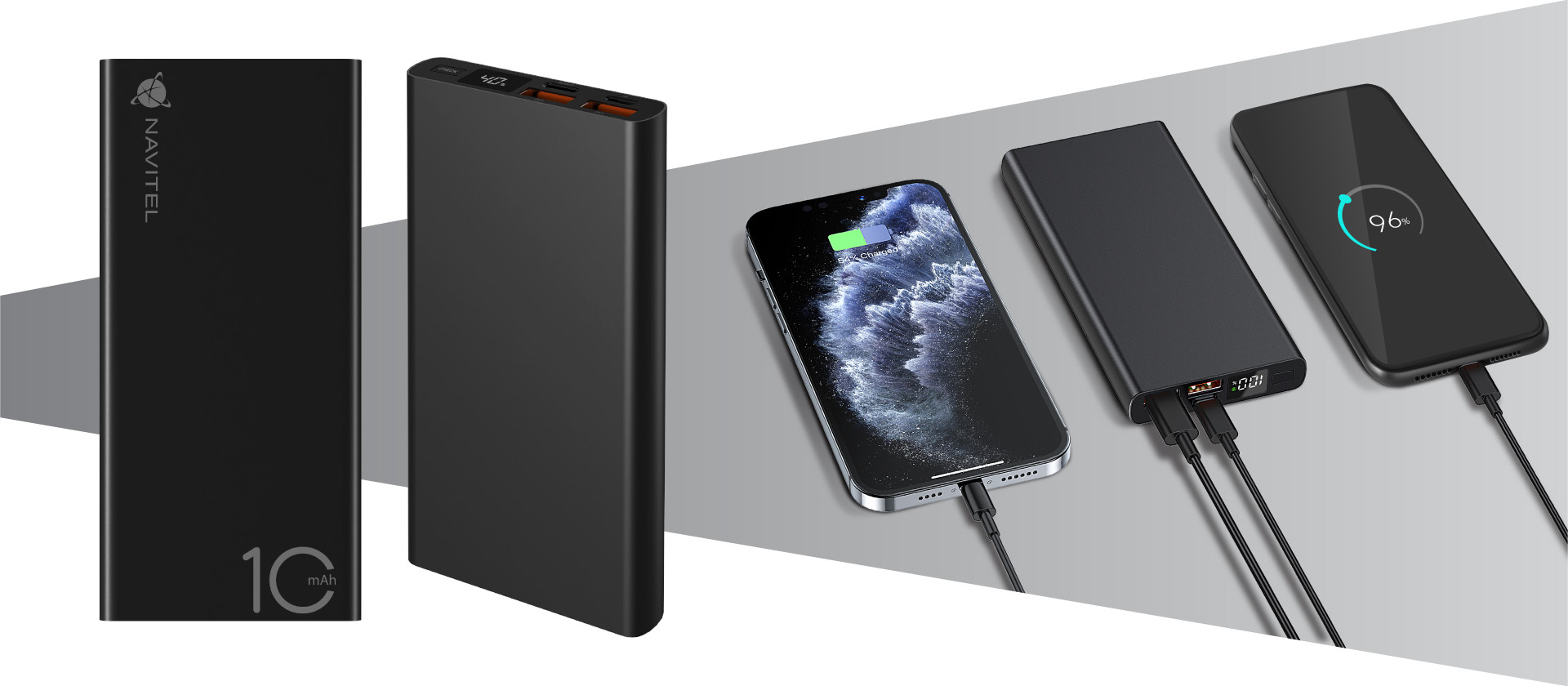 NAVITEL PWR10 AL BLACK je pĹ™enosná externĂ baterie s kapacitou 10000 mAh. Dva porty USB-A a obousmÄ›rnĂ˝ port USB-C, kterĂ© podporujĂ protokoly rychlĂ©ho nabĂjenĂ, umoĹľĹujĂ souÄŤasnÄ› nabĂjet vĂce elektronickĂ˝ch zaĹ™ĂzenĂ, jako je smartphone, tablet a fitness náramek. TÄ›lo PWR10 AL BLACK je vyrobeno z hlinĂku, kterĂ˝ dobĹ™e odvádĂ teplo a chránĂ zaĹ™ĂzenĂ pĹ™ed pĹ™ehřátĂm. DigitálnĂ displej Vám pomĹŻĹľe sledovat zbĂ˝vajĂcĂ energii baterie, abyste nezĹŻstali bez záloĹľnĂho zdroje v tu nejmĂ©nÄ› vhodnou chvĂli.