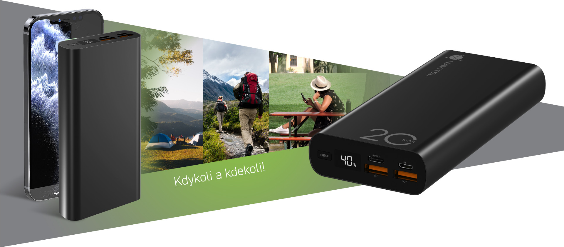 NAVITEL PWR20 AL BLACK je pĹ™enosná externĂ baterie s kapacitou 20000 mAh. Dva porty USB-A a obousmÄ›rnĂ˝ port USB-C, kterĂ© podporujĂ protokoly rychlĂ©ho nabĂjenĂ, umoĹľĹujĂ souÄŤasnÄ› nabĂjet vĂce elektronickĂ˝ch zaĹ™ĂzenĂ, jako je smartphone, tablet a fitness náramek. TÄ›lo PWR20 AL BLACK je vyrobeno z hlinĂku, kterĂ˝ dobĹ™e odvádĂ teplo a chránĂ zaĹ™ĂzenĂ pĹ™ed pĹ™ehřátĂm. DigitálnĂ displej Vám pomĹŻĹľe sledovat zbĂ˝vajĂcĂ energii baterie, abyste nezĹŻstali bez záloĹľnĂho zdroje v tu nejmĂ©nÄ› vhodnou chvĂli.