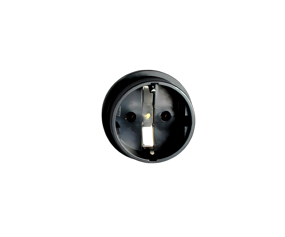 - Druhý konektor: CEE 7/3 rovná zásuvka německého typu s ochranými plíšky po stranách. Vhodné pro připojení vidlice, která je vybavena zemnícími plíšky po stranách