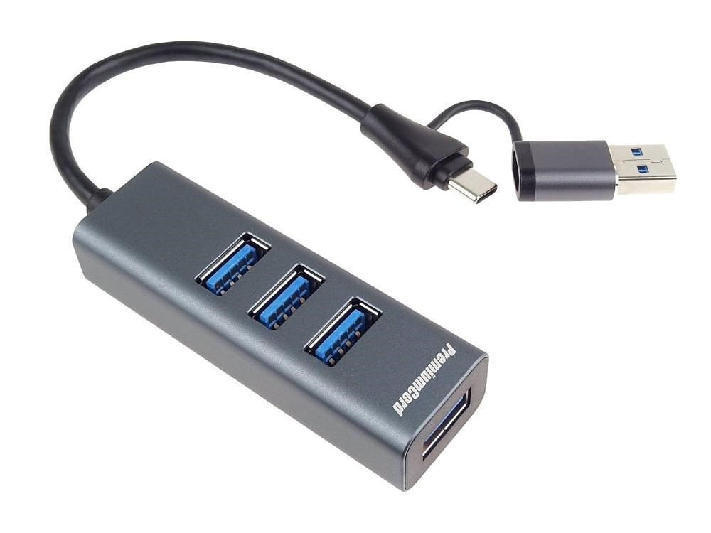 PremiumCord Hub 5G SuperSpeed, USB-C a USB-A na 4x USB-A 3.2 Gen 1