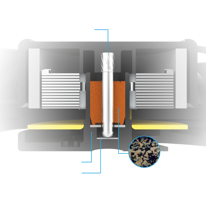 NovĂ© loĹľisko MHD je vybaveno loĹľiskem Hydro Dynamic s vylepšenou technologiĂ práškovĂ© metalurgie. Technologie loĹľisek MHD vyuĹľĂvá zvýšenou kapacitu oleje, která zlepšuje mazánĂ loĹľiska a nabĂzĂ plynulejšà otáčenĂ. Vylepšená distribuce oleje vytvářà maximálnĂ plynulost, která prodluĹľuje Ĺľivotnost a spolehlivost ventilátoru aĹľ na 40 000 hodin a sniĹľuje hluÄŤnost ventilátoru.