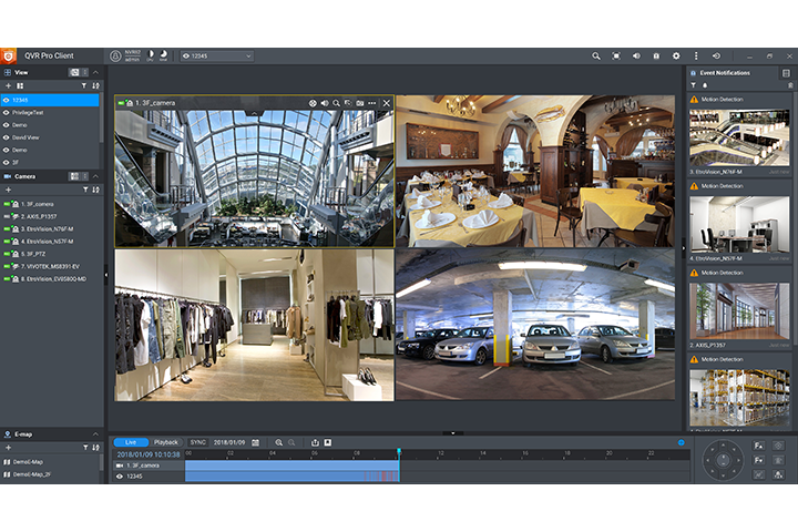 Software QVR Pro Client lze nainstalovat na zařízení se systémem Windows® a Mac®, což vám umožní sledovat z různých platforem a flexibilně přepínat z režimu živého náhledu nebo přehrávání a plně ovládat sledované oblasti.