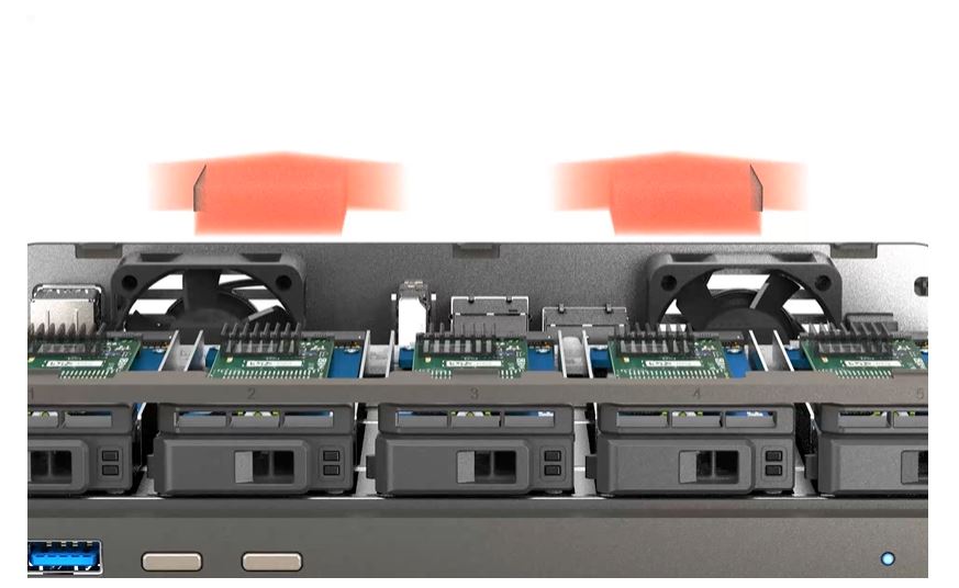 ZaĹ™ĂzenĂ TBS-h574TX je vybaveno vynikajĂcĂm systĂ©mem chlazenĂ, dvÄ›ma ventilátory a podporuje chladiÄŤe SSD (chladiÄŤe se prodávajĂ samostatnÄ›), kterĂ© účinnÄ› zlepšujĂ odvod tepla pĹ™i intenzivnĂm pracovnĂm zatĂĹľenĂ a umoĹľĹujĂ tvĹŻrcĹŻm bez obav vyuĹľĂvat nejvyššà vĂ˝kon SSD.
