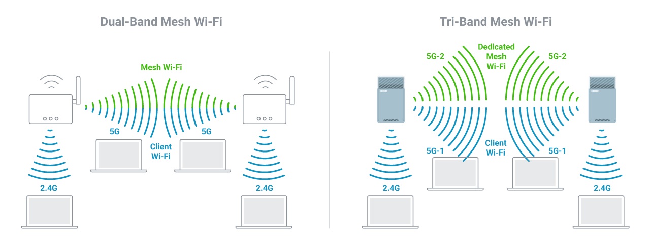 Zařízení QMiro-201W podporuje třípásmovou síť Wi-Fi využívající 2,4 GHz a 5 GHz a vyhrazené pásmo Mesh Wi-Fi 5 GHz pro připojení s velkou šířkou pásma mezi směrovači mesh Wi-Fi. Na rozdíl od konvenčních dvoupásmových směrovačů, jejichž pásmo 5 GHz musí být sdíleno mezi klienty Wi-Fi a směrovači Mesh Wi-Fi, zaručuje zařízení QMiro-201W plynulé a stabilní připojení Wi-Fi.