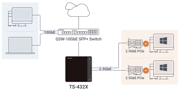 1. Rychlý přímý přístup pro jednotlivce: Využijte integrované porty 2,5GbE a 10GbE v zařízení TS-432X a dosáhněte vyšších rychlostí sítě LAN.