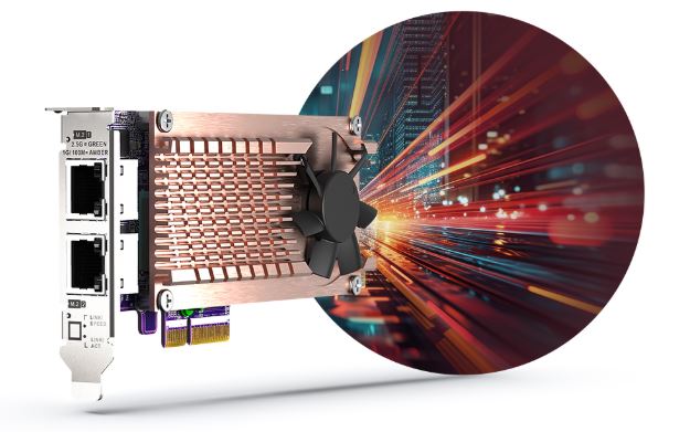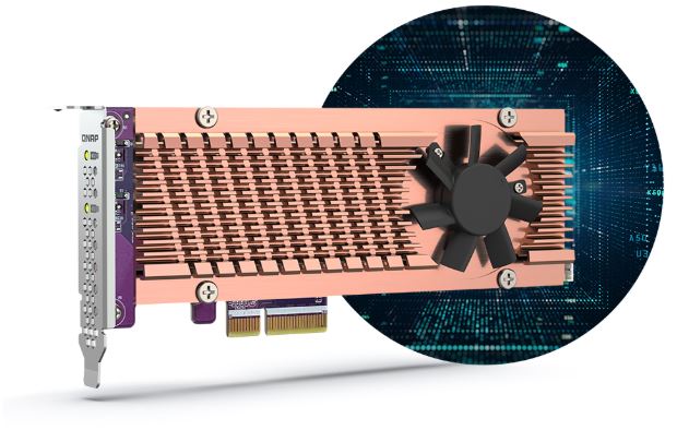 Karta QM2-2P2G2T (volitelná): Přidejte dva porty 2,5GbE a současně dva sloty M.2 SSD.