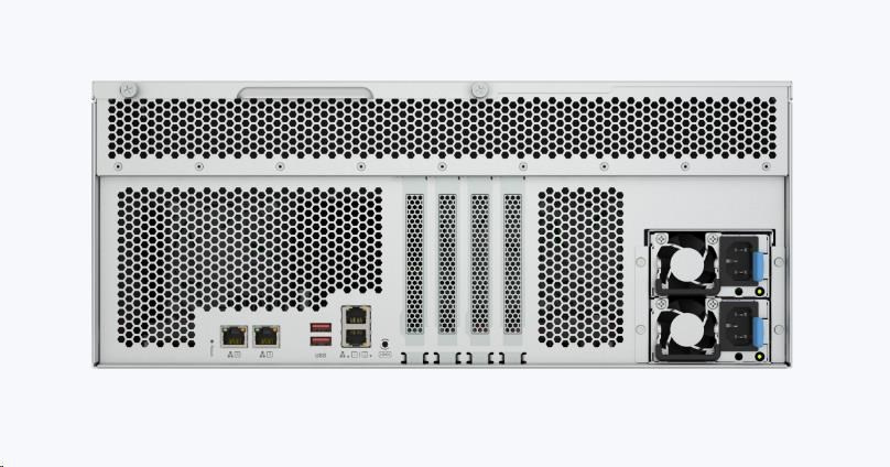 - Vysokorychlostní porty 10/2,5GbE: Je vybaven dvěma porty 10GbE a dvěma porty 2,5GbE, které jsou ideální pro rychlé sdílení souborů více uživateli, virtualizaci s nízkou latencí a vysoce výkonné mediální pracovní postupy.