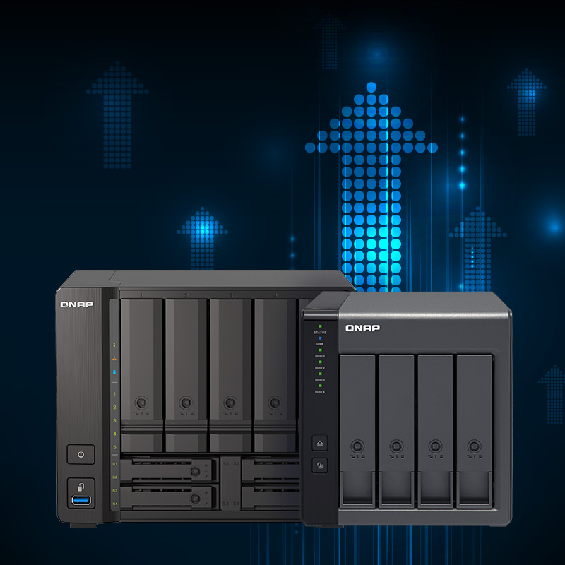 Zvyšte produktivitu svého podniku pomocí čtyřjádrového zažízení QuTS Hero NAS s 9 pozicemi, které podporuje U.2 NVMe SSD a připojení 10GbE/2,5GbE