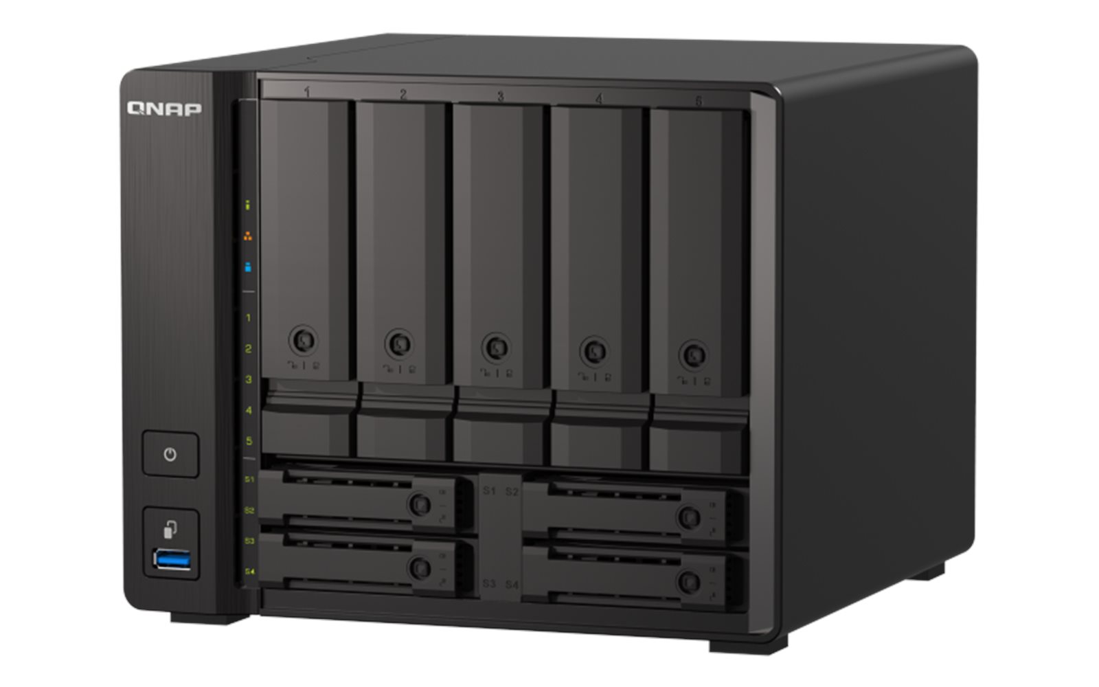 Díky čtyřjádrovému procesoru AMD Ryzen™ řady V1000 V1500B a konektivitě 10GbE/2,5GbE nabízí 9pozicové zařízení TS-h973AX vysokokapacitní hybridní úložnou infrastrukturu v kompaktním fyzickém provedení. S pěti 3,5“ diskovými pozicemi SATA 6 Gb/s, dvěma 2,5" sloty U.2 NVMe SSD (sloty 1 a 2 podporují disky U.2 NVMe i SATA SSD) a dvěma 2,5" sloty SATA 6Gbps SSD může zařízení TS-h973AX těžit z SSD cache pro podporu aplikací náročných na IOPS. S operačním systémem QuTS hero na bázi ZFS zajišťuje zařízení TS-h973AX integritu dat a podporuje blokovou inline deduplikaci a kompresi dat, téměř neomezený počet snímků a SnapSync v reálném čase pro uspokojení potřeb v oblasti souborových serverů s kritickým významem, virtualizačních serverů, kolaborativních úprav videí nebo efektivních aplikací pro zálohování a obnovu dat s výkonem a spolehlivostí práce v podnikové třídě a nižšími celkovými náklady.