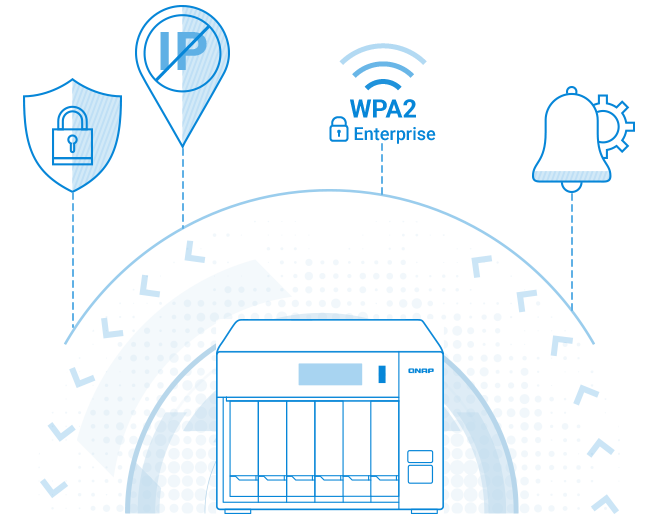 TVS-675 je vybaven rozsáhlými bezpečnostními funkcemi, které zajišťují bezpečnost vašich dat.