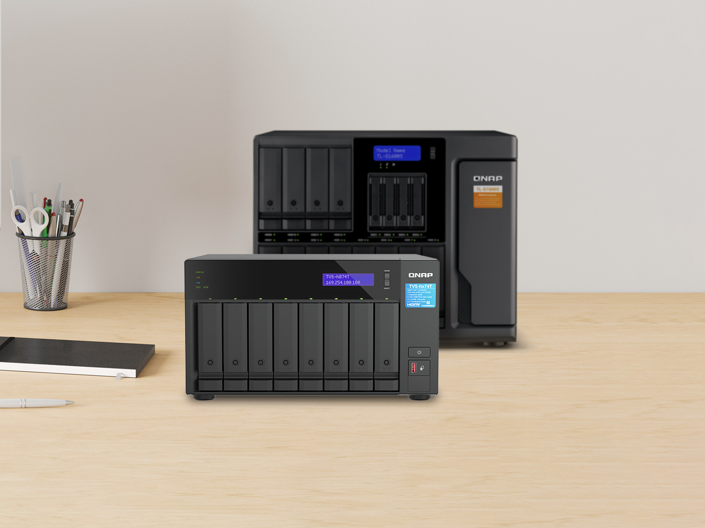 TVS-h874T podporuje úložnou kapacitu až 154 TB. Když se vaše požadavky na úložiště zvýší, jsou k dispozici jednotky QNAP JBOD, které poskytují celkovou úložnou kapacitu 396 TB.