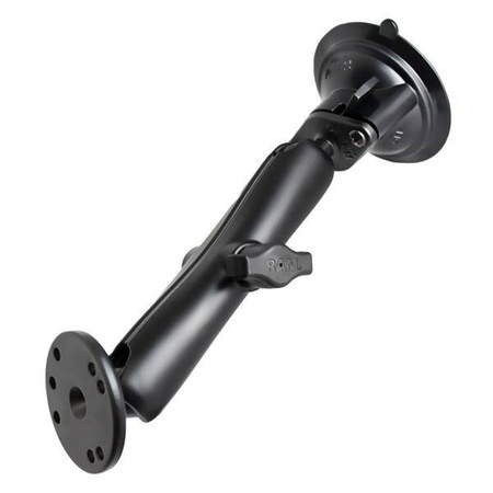 Přísavný držák RAM® Twist-Lock™ s dvojitou koulí a kulatou deskou - dlouhý RAM-B-166-C-202U se skládá z 3,3" přísavky s otočným zámkem, DLOUHÉHO ramene s dvojitou zásuvkou a kulaté základny, která obsahuje univerzální vzor otvorů AMP. Základna přísavky je navržena tak, aby pevně držela na skle a neporézní plastové povrchy, včetně lepicích disků RAM. Držák je navržen s patentovaným systémem gumových kuliček a zásuvek o průměru 1" RAM, který má nastavovací body na obou koncích ramene s dvojitou zásuvkou; to umožňuje téměř nekonečné nastavení a dokonalé pozorovací úhly. Vzor otvorů na adaptéru s kulatou základnou se připojí k většině kolébek RAM a kolébkám třetích stran. *Přísavná základna RAM® Twist-Lock™ je ideální pro čelní skla vozidel a jiné neporézní povrchy. *Obsahuje rameno RAM® s dvojitou objímkou velikosti B a 2,5" kulatou základnu s 1" gumovou koulí velikosti B; technologie koule a objímky umožňuje téměř neomezenou nastavitelnost. *Vyrobeno z práškově lakovaného hliníku pro námořní použití a vysoce odolného kompozitu pro dlouhou životnost a spolehlivost v nejnáročnějších podmínkách.