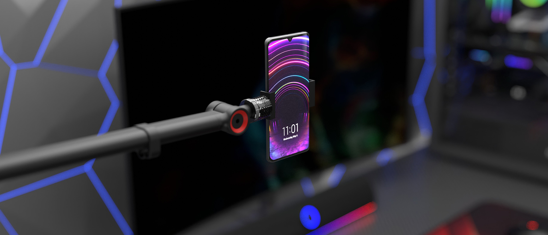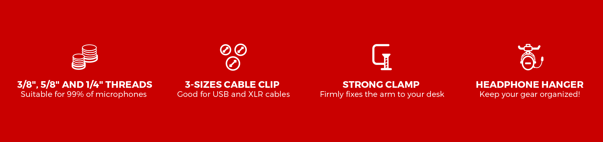 Rádi byste měli vše pohodlně po ruce a přitom snadno udržovali pořádek na pracovišti i na hřišti? To je pro vás skvělé, protože další funkcí, která rameno Thulium 500 odlišuje, je přiložený držák na náhlavní soupravu. Držák je připevněn k základně ramene dvěma šrouby, které zaručují jeho plnou stabilitu, a poskytuje vyhrazené místo pro vaše sluchátka, která už nemusí zabírat místo na vašem stole nebo na policích. Držák je navíc vybaven 2 kabelovými žlábky, které umožňují vést kabely mikrofonu a sluchátek současně.