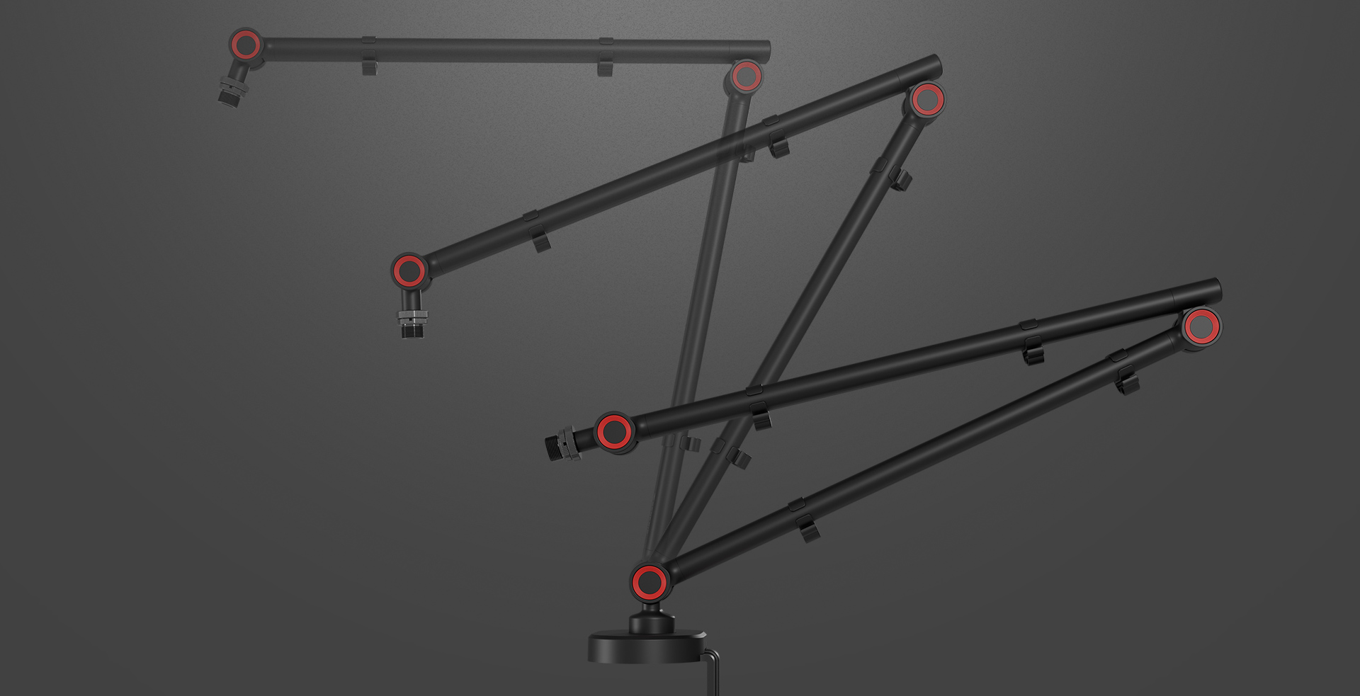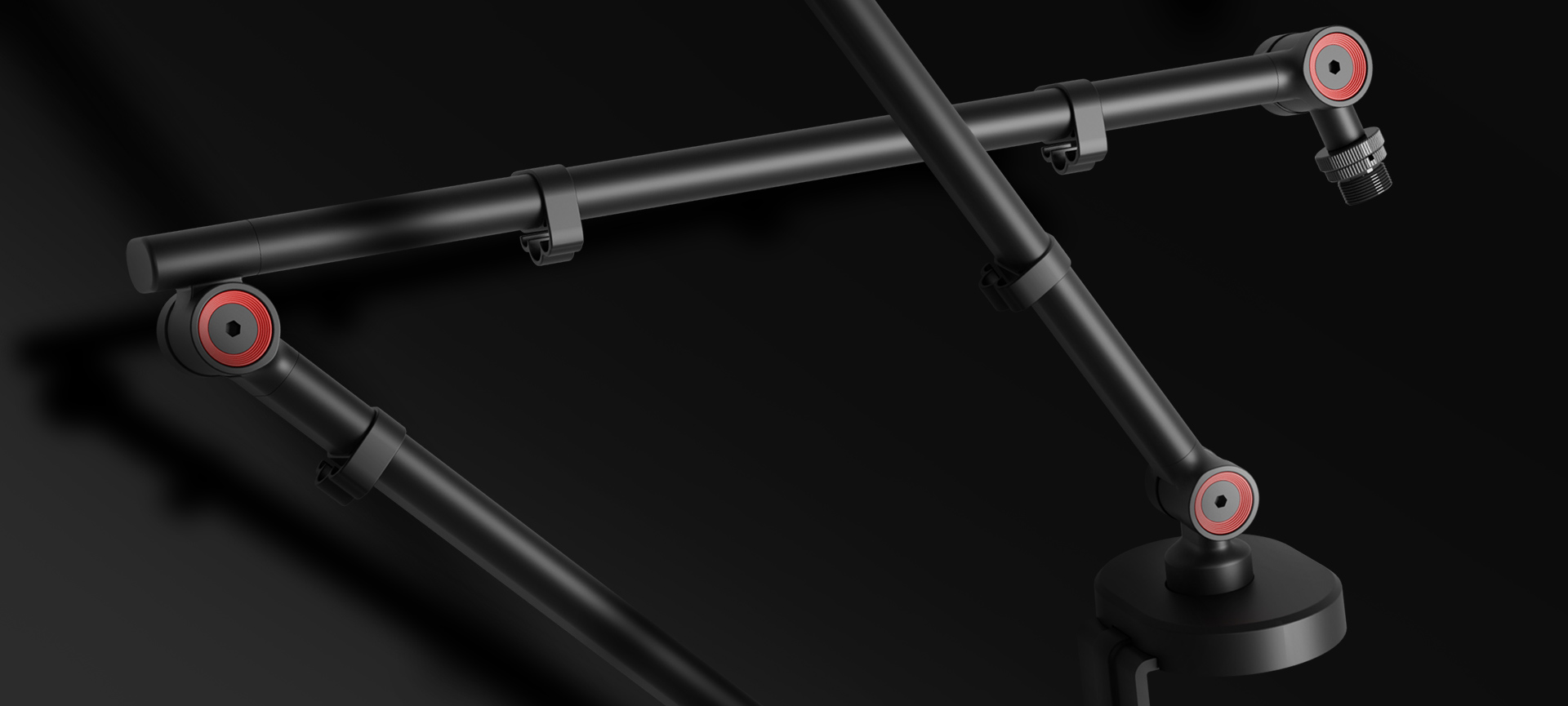 Jednoduché, intuitivní a přitom velmi robustní upevnění pomocí šroubových svorek umožňuje snadné připevnění ramene Thulium 500 na jakoukoli desku stolu o tloušťce 10-55 mm. Připojení ramene k základně zajišťuje plnou stabilitu při zachování volného otáčení. Díky poměrně velké ploše a eliptickému tvaru základny se rameno nekýve a zůstává dokonale stabilní v jakékoli poloze, a to i zatížené nejtěžšími mikrofony nebo příslušenstvím.