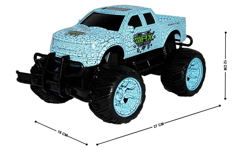 Obsah balení: RC monster truck Cross Country Truck Akumulátor Ni-Cd 4,8V 300mAh 2SM Páčkový ovladač Nabíjecí kabel Technické parametry: Měřítko: 1/16 Konstrukce auta: monster Délka auta: 29 Šířka auta: 16 Výška auta: 15.5 Auto je vhodné na ven: ano Barva: Modrá Auto je vhodné do interiéru: ano Typ motorů v autě: stejnosměrné Rychlost auta: 10 Kapacita akumulátoru v autě: 300 Napětí akumulátoru v autě: 4.8 Typ akumulátoru do auta: Nicd Typ nabíječky: USB Výměnný akumulátor v autě: ano Napájení ovladače k autu: 2xAA Doba jízdy auta: 15 Nabíjecí proud nabíječky: 250 Frekvence ovládání RC auta: 27Mhz Konstrukce ovladače k autu: Páčkový Plynulá regulace rychlosti: ne Plynulá řízení zatáčení: ne Voděodolnost (stříkající voda): ano Vodotěsnost (potopení): ne Naměřená rychlost: 9,9