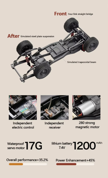 Auto na dálkové ovládání Land Cruiser TOYOTA Supertourer 1/12Toyota Land Cruiser je auto na dálkové ovládání, které vychází z reálného vozu Toyota LC79. Díky kvalitnímu a realistickému zpracování se jedná o licencovaný model Toyota. Design modelu je vyladěný do posledního detailu. Nádherná, kvalitní karoserie věrně kopíruje linie reálného vozu. RC auto Land Cruiser Toyota už od nás možná znáte v červené, pískové či stříbrné verzi. Verze Supertourer se od nich liší specifickou zadní korbou.Terénní RC auto Toyota SupertourerEdice Supertourer je vybavena zadní korbou, která má otevírací bočnice (celkem 4) pro snadný přístup k nákladu. Celá korba se dá navíc sejmout a vznikne vám tak verze pick-up. Světlá výška modelu je 40 mm, v kombinaci s pohonem všech čtyř kol a silným motorem si poradí se stoupáním pod úhlem až 46 °. Měkké pneumatiky s hlubokým vzorkem jsou vyrobeny z velmi kvalitní soft gumy, zajišťují skvělou trakci. RC model auta je vyrobený z odolného, pružného plastu, díky tomu dokáže držet s dětmi tempo od jejich útlého věku. Navíc jsou k dispozici dva rychlostní režimy, mezi kterými jednoduše přepínáte pomocí tlačítka na dálkovém ovládání. Pro nejmenší je vhodný pomalejší režim, kdy model jede rychlostí cca 4 km/h. Zkušenější řidiči využijí rychlost 8 km/h.RC Land Cruiser TOYOTA Supertourer v plné výbavěPropracovaná karoserie je designována s přesností na každý detail. Součástí balení jsou i veškeré doplňky karoserie, jako jsou stěrače, kliky atd. Plné výbavě odpovídá i LED osvětlení, fungují potkávací, obrysová, směrová i brzdová světla. Podržením tlačítka pro vypnutí osvětlení lze zapnout i varovná světla.52 minut jízdyNově je tato verze RC modelů vybavena akumulátorem Li-ion 7,4 V 1200 mAh, který je umístěn přímo pod kapotou, což ještě zlepšuje jízdní vlastnosti vozu a umožňuje to snadný přístup k akumulátoru. Na jedno nabití vydrží jezdit 52 minut. Nabijete ho přiloženou USB nabíječkou. Pistolové ovládání se velmi pohodlně drží levou rukou, pomocí ukazováčku přidáváte či ubíráte plyn a pravou rukou zatáčíte. Ovládání je plně proporcionální, to znamená, že auto ihned reaguje na sebemenší změnu a vy tak můžete plynuje regulovat rychlost i úroveň zatáčení od minima až do maxima. Ovládání funguje na frekvenci 2,4 GHz, takže se vám model nebude s žádným dalším rušit a můžete tak vyrazit ven s tatínkem, sourozencem i kamarádem a užít si tak spoustu zábavy. Do ovladače budete potřebovat 2 x AA baterie. Obsah balení: RC auto TOYOTA s navijákem - žlutá Akumulátor 7,4 V 1200 mAh Akumulátor 7,4 V 2500 mAh Dálkové ovládání USB nabíječka Samolepky Technické parametry: Měřítko: 1/12 Konstrukce auta: crawler Délka auta: 37 Šířka auta: 15 Výška auta: 16 Hmotnost auta: 878 Auto je vhodné na ven: ano Barva: žlutá Auto je vhodné do interiéru: ano Typ motorů v autě: stejnosměrné Rychlost auta: 8 Kapacita akumulátoru v autě: 2500 Napětí akumulátoru v autě: 7.4 Typ akumulátoru do auta: Li-ion Typ nabíječky: USB Výměnný akumulátor v autě: ano Napájení ovladače k autu: 2xAA Doba jízdy auta: 104 Dosah ovládání auta: 50 Frekvence ovládání RC auta: 2,4Ghz Konstrukce ovladače k autu: Pistolový Plynulá regulace rychlosti: ano Plynulá řízení zatáčení: ano Voděodolnost (stříkající voda): ano Vodotěsnost (potopení): ne