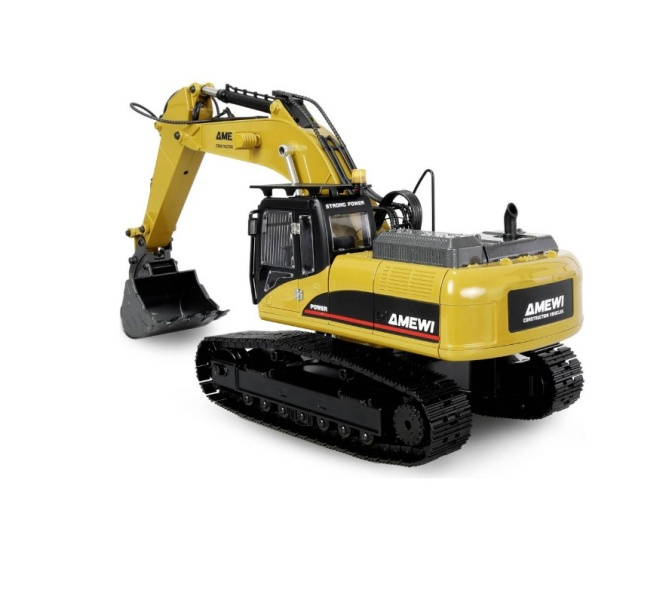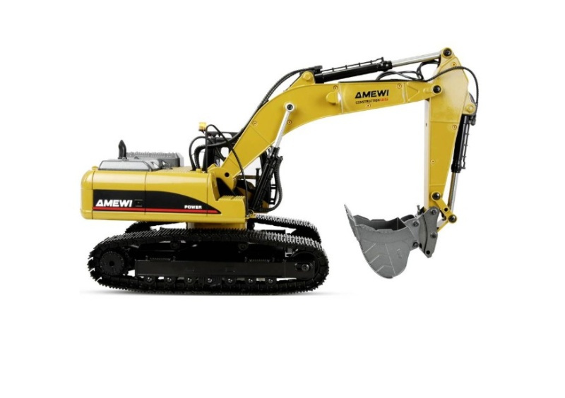 Pásový bagr na dálkové ovládáníBagr sice není obrandovaný, ale jedná se o maketový bagr Catterpillar. Jde o profesionální model, který je z 98 % z kovu. Má hmotnost cca 7 kg. Díky této hmotnosti má velkou rypnou sílu a lze s ním plnohodnotně maketově bagrovat. Ovládané funkce jsou proporcionální a každý pohyb lze extra samostatně řídit. Všechny části převodovky jsou vyrobené z kovu pro dlouhou životnost. Servo motory pro ovládání ramene jsou navrženy formou šroubovice, tudíž síla je tak násobena pro maximální výkon a těžkou práci. Kvalita a detailní provedení tohoto modelu jsou vzhledem k ceně unikátní. Elektronika je navíc chráněna před stříkající vodou.RC bagr s drapákem a bouracím kladivemModel je vybaven výkonným LED osvětlením, i pro noční provoz. Zvukový modul zajišťuje věrnou imitaci zvuků velkého bagru. Specialitou je i vypínatelný kouřový modul, tento vyvíječ kouře simuluje kouř z výfuku. V balení je také funkční kovový drapák a funkční kovové bourací kladivo. Model tak lze během chvilky přestavět. Bagr je ovládán na frekvenci 2,4 GHZ, celkově má vysílač 23 kanálů, pro ovládání každé funkce zvlášť. Budete do něho potřebovat 3 x AA baterie.Technické specifikace:- Konstrukce: 98% celokovový (z technických důvodů jsou některé drobné díly z plastu)- Pohon: Kovové pásy, individuálně ovladatelné- Počet kanálů: 23 kanálů- Baterie: LI-ION 7,4V 2000 mAh- funkce: vpřed, vzad, vlevo, vpravo,- Nástavba vlevo, nástavba vpravo, hlavní výložník nahoru/dolů, toporo (přední výložník) nahoru/dolů,- Lžíce nahoru/dolů, světlo, zvuk, demo režim- Generátor kouře lze zapnout/vypnout - Každý pás individuálně ovladatelný, otáčení na místě, otáčení během jízdy- Zapnutí/vypnutí zvukuBagr je k dispozici i v bílé barvě. Obsah balení: RC celokovový bagr v transportním kufru Dobíjecí akumulátor 7,4V Li-Ion 2000 mAh Vysílač 2,4 GHz USB nabíječka Uživatelská příručka Bourací kladivo Drapák na dřevo Drapák na šrot Hydraulické nůžky Lžíce Rychloupínák Šroubovák Technické parametry: Měřítko: 1/14 Konstrukce auta: bagr Délka auta: 53 Šířka auta: 17.5 Výška auta: 20 Hmotnost auta: 8700 Auto je vhodné na ven: ano Barva: Žlutá Auto je vhodné do interiéru: ano Typ motorů v autě: stejnosměrné Rychlost auta: 2 Kapacita akumulátoru v autě: 2000 Napětí akumulátoru v autě: 7.4 Typ akumulátoru do auta: Li-ion Typ nabíječky: USB Výměnný akumulátor v autě: ano Doba jízdy auta: 30 Dosah ovládání auta: 25 Frekvence ovládání RC auta: 2,4Ghz Konstrukce ovladače k autu: Páčkový Plynulá regulace rychlosti: ano Plynulá řízení zatáčení: ano Voděodolnost (stříkající voda): ano
