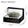 Obsah balení: Model tanku Ovladač s nabíjecím kabelem Anténa Technické parametry: Délka: 14 Šířka: 5.3 Výška: 5 Vhodný na ven: ne Vhodný do interiéru: ano Typ nabíječky: z ovladače Výměnný akumulátor: ne Napájení ovladače: 4xAA Dosah ovládání: 5 Osvětlení: ano Plynulá regulace jízdy: ne Vodotěsnost: ne Voděodolnost: ne Typ střelby: žádná Měřítko: 1/72 Rychlost jízdy: 3