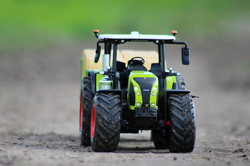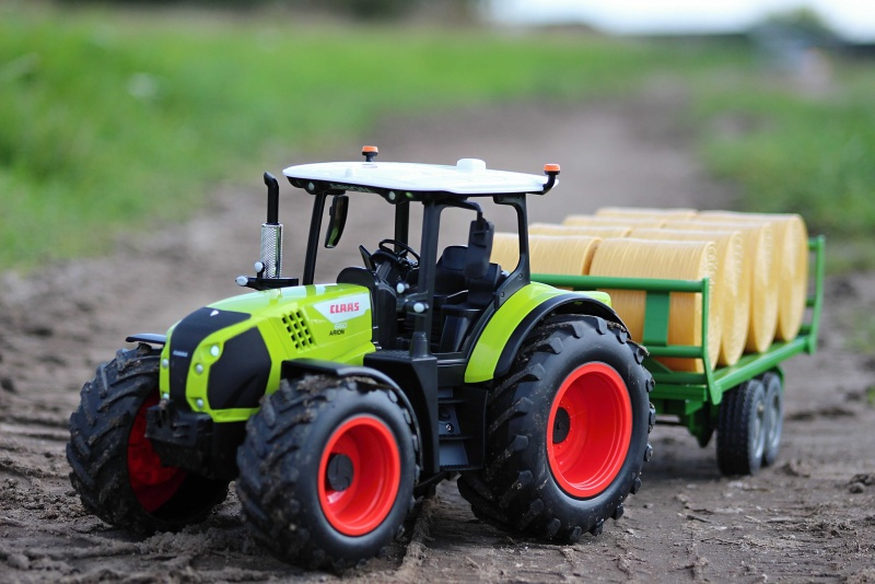 RC traktor ARION CLAAS 1/16 s valníkem s balíky slámy