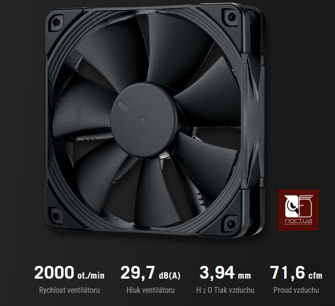 K překonání tepelných problémů nejnovějších vícejádrových CPU nabízí ROG Ryujin III průmyslové ventilátory Noctua PPC-2000 PWM, které poskytují vysoký výkon a minimální hlučnost.