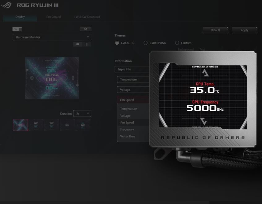 Tato generace chladičů ROG all-in-one nyní obsahuje software, který vám umožní ovládat rychlost vašeho čerpadla a vestavěného ventilátoru způsobem, který by měl být okamžitě rozpoznatelný pro veterány FanXpert.