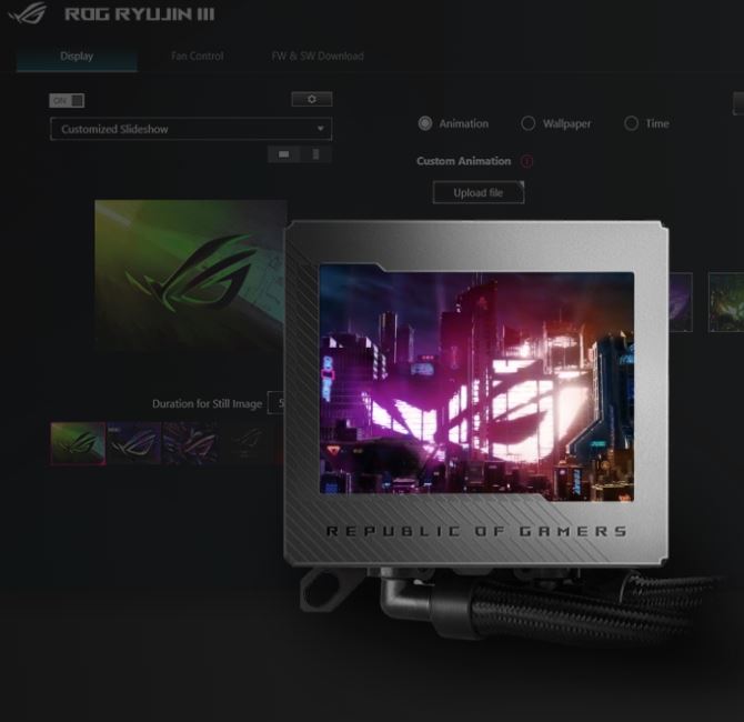Vyberte si předem navrženou animaci z galerie ROG nebo snadno přidejte jednu vlastní.