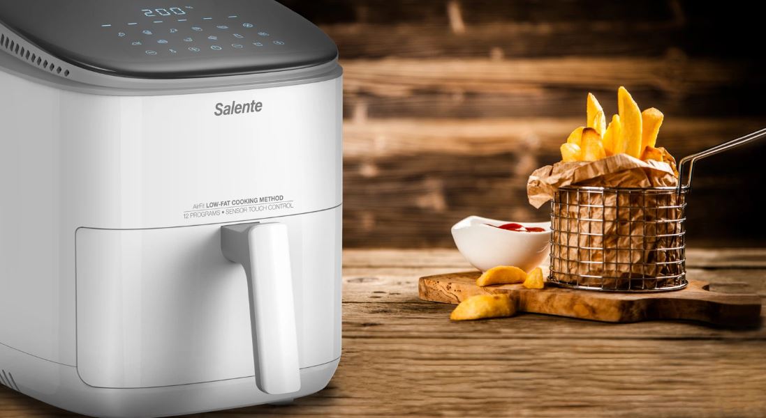Horkovzdušná fritéza Salente AirFit splňuje současné nejvyšší nároky na zdravou a rychlou přípravu pokrmů a nabízí kombinaci hned několika způsobů přípravy od fritování a grilování, přes sušení až po rozmrazování. I těm nejnáročnějším kuchařům a kuchařkám umožňuje nastavení teploty v rozsahu 30-200 °C v krocích po 1 °C a nastavení času přípravy pokrmu v rozsahu 1-60 minut v krocích po 1 minutě.