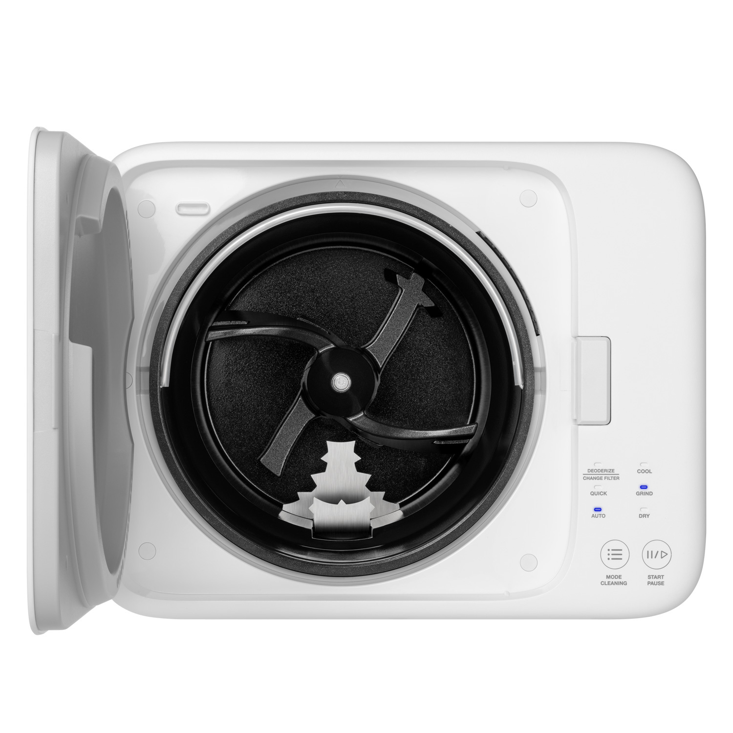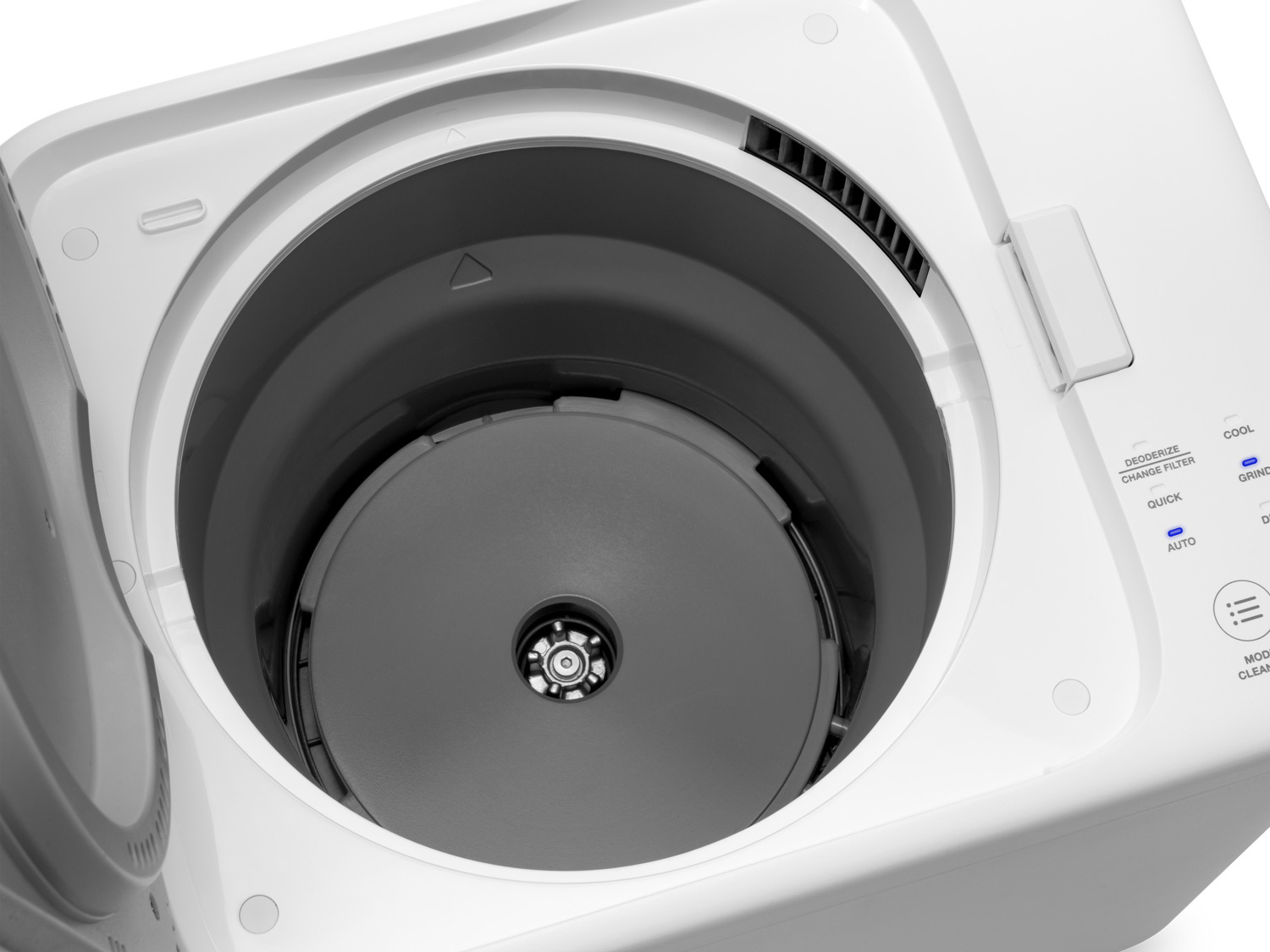 Vzhledem k rozměrům 33 × 25,7 × 33,4 cm (při hmotnosti 7,8 kg) se zařízení vejde prakticky do každé kuchyně, aniž by překáželo při běžných činnostech. Jeho hlučnost je jen 50 dB, což je srovnatelné třeba s běžným ruchem v kanceláři – ekologické zpracování bioodpadu tedy neruší sousedy ani spící děti.