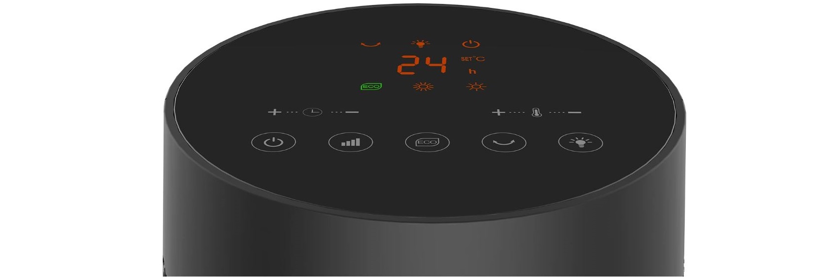 Jednoduchost obsluhy i jednoduchost čištění doplňuje digitální ovládací panel s dotykovými ovládacími senzory a barevným displejem. Stačí pouhý dotek prstem na příslušnou ikonu na displeji a topidlo okamžitě reaguje a plní vaše příkazy. Tento beztlačítkový ovládací prvek se vyznačuje zejména výrazně vyšší životností oproti klasickým ovládacím tlačítkům a navíc jej lze pohodlně udržovat a čistit díky absenci mechanických prvků a výstupků. Hladký celistvý povrch se proto velmi jednoduše udržuje a čistí – stačí pouze jemně setřít vlhkým hadříkem.