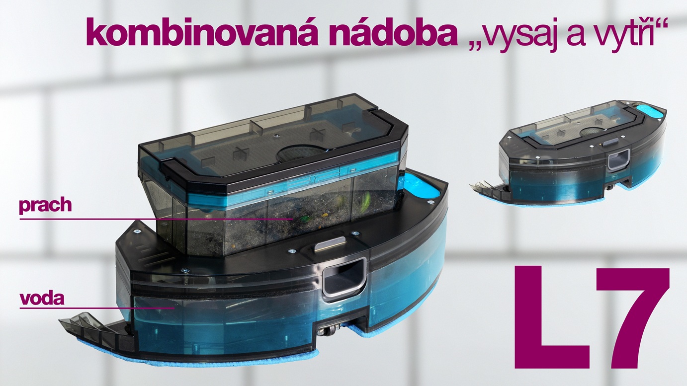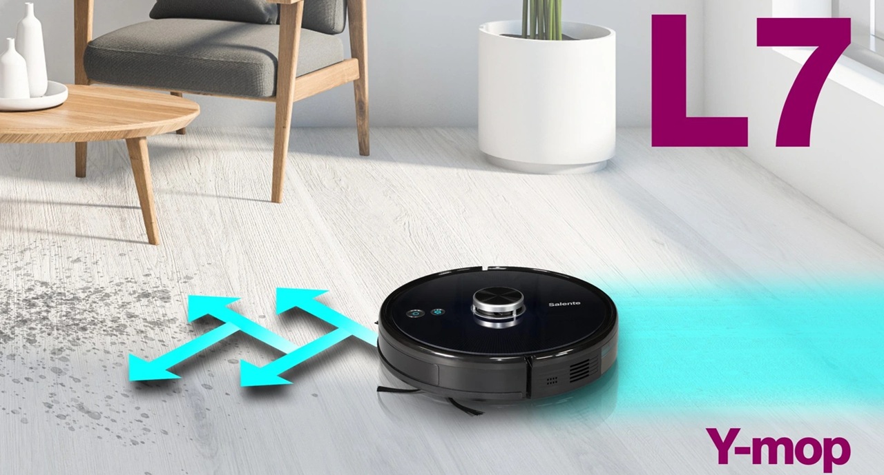 Salente L7 je díky 360° radaru schopen zajistit velmi efektivní a rychlý úklid. Nepřejíždí opakovaně uklizený prostor a pokračuje v úklidu z místa, kde byl přerušen. O svém stavu informuje hlasovými povely v češtině a s mobilní aplikací ho můžete ovládat kdekoliv. Vestavěná UVC LED lampa zbaví uklízený prostor virů, bakterií a dalších choroboplodných zárodků a nový režim Y-mop zajistí ještě efektivnější úklid. Součástí balení je i speciální pěnový válec na jemný prach nebo kombinovaná nádoba „vysaj a vytři“, která umožňuje vytírat a vysávat zároveň. Velká baterie 5 200 mAh, úsporný a výkonný BLDC motor a funkce automatického úklidu zajistí, že žádný prostor nebude pro Salente L7 dost velký.