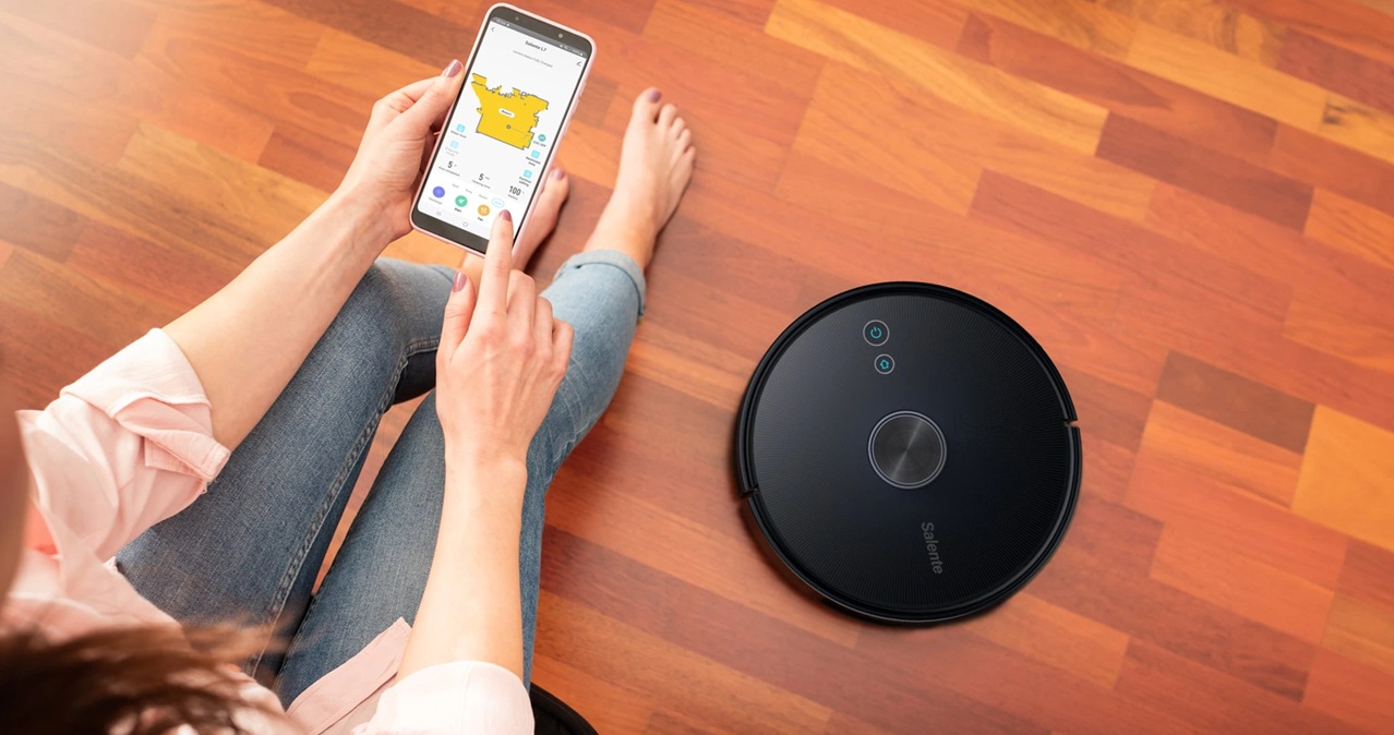 Intuitivní aplikace Salente umožní ovládat vysavač kdekoliv. Informuje vás o aktuálním stavu vysavače, lze zde spustit různé režimy úklidu, nastavit úrovně vysávání nebo vytírání, plánovaný úklid nebo dobu kdy nechcete být rušeni. Mobilní aplikace je v českém jazyce a je určena pro operační systémy Android a iOS.