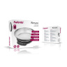 Salente Rimare splňuje evropské normy pro bezpečný provoz i zdravotní nezávadnost. Má certifikace EMC, RoHS i LFGB, které garantují, že se jedná o přístroj, na nějž se v kuchyni můžete stoprocentně spolehnout. Navíc je lehká (bez misky váží jen 357 g) a kompaktní (rozměry 16,6 × 18,1 × 3,2 cm), takže ji při vaření vždy pohodlně postavíte, kam je zrovna třeba. Balení obsahuje vše potřebné – vedle váhy samotné i nerezovou misku, alkalické baterie a návod k obsluze. Stačí tak rozbalit a pustit se do díla.SPECIFIKACE :