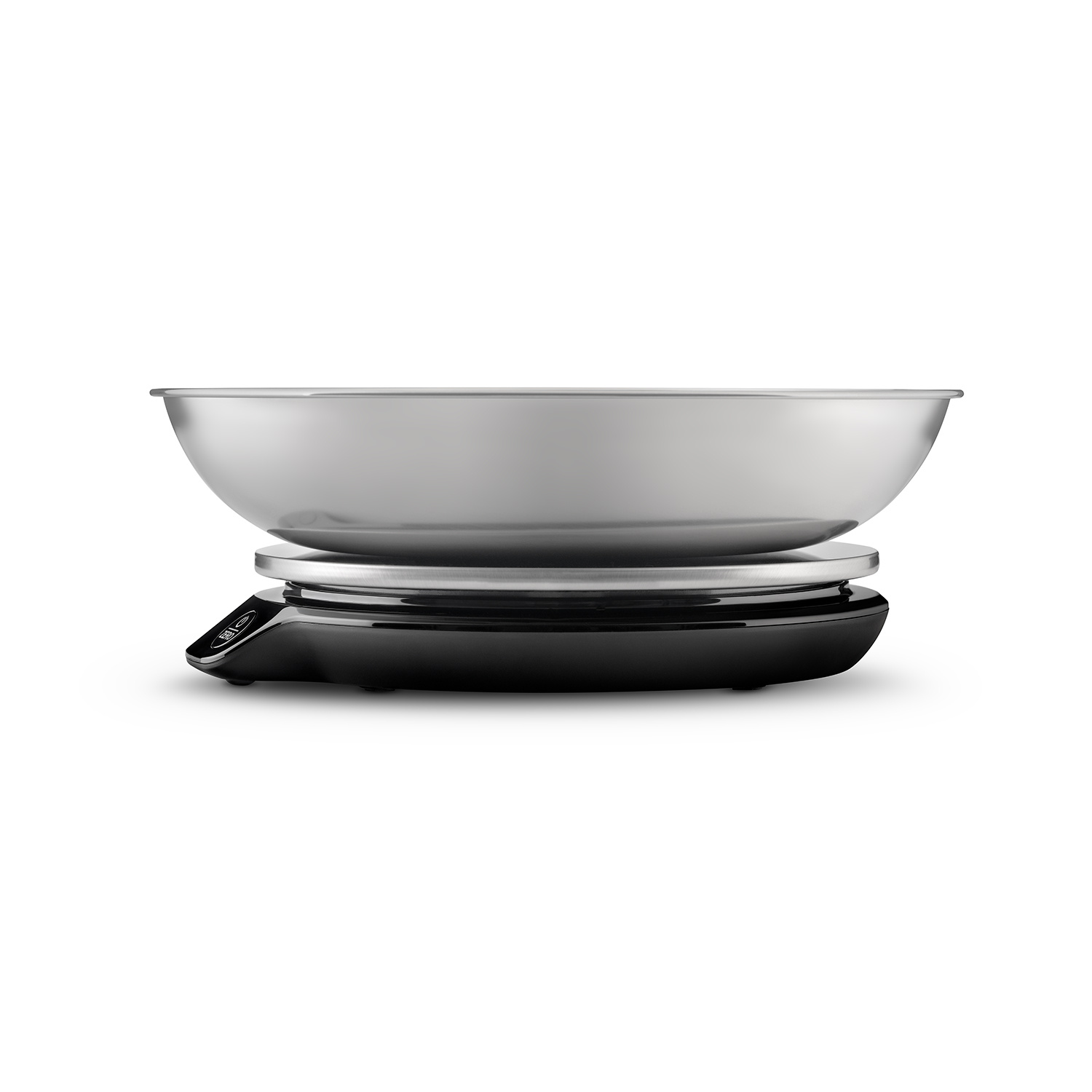 • váživost 5 kg • Rozlišení: 1) 0,1 g (v rozsahu 0,2 g až 200 g) 2) 0,5 g (v rozsahu 200 g až 1000 g) 3) 1 g (v rozsahu 1000 g až 5000 g) • Odnímatelná nerezová vážící mísa (objem 1 l) • Trojí možnost vážení: 1) na dodávané míse 2) přímo na vážící ploše 3) na vlastním talíři/nádobě • Velký LCD displej (výška číslic 11,5 mm) • Vysoce čitelný kontrastní displej s inverzním zobrazením • Hygienická nerezová vážící plocha a mísa certifikovány pro přímý styk s potravinami • Hladká nestrukturovaná vážící plocha i mísa pro snadné a rychlé čištění • Funkce nulování hmotnosti vážící nádoby (Zero) • Funkce postupného dovažování a sčítání hmotnosti ingrediencí (Tara) • Možnost volby jednotek hmotnosti (g/oz/lb:oz) • Možnost odměřování objemu vody nebo mléka v jednotkách ml nebo fl:oz • 4 gumové protiskluzové nožičky pro zajištění maximální stability a minimální kluznosti po povrchu • Samostatné tlačítko pro zapnutí/vypnutí celé váhy • Scale BatterySaver (funkce automatického vypnutí celé váhy po 2 minutách nečinnosti) • Varovná indikace překročení max. vážící kapacity váhy (> 5 kg) • Varovná indikace nutnosti výměny baterie • Napájení: 3x 1,5 V mikrotužková baterie AAA/LR03 (součást balení) • LFGB certifikace pro nezávadný styk povrchu váhy s potravinami • Evropské certifikace EMC, RoHS • Rozměry bez mísy (š × h × v): 16,6 × 18,1 × 3,2 cm • Rozměry s mísou (š × h × v): 20,7 × 20,7 × 7,3 cm • Hmotnost (bez mísy a bez baterií): 357 g • Hmotnost (s mísou a bez baterií): 490 gOBSAH BALENÍ :