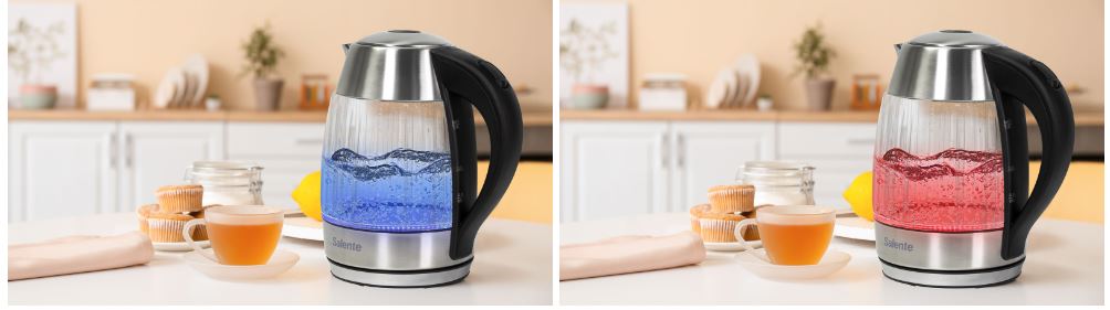 Vybere si úplně každý – k dispozici jsou u tohoto modelu dvě barevné varianty, a to buď s modrým nebo červeným podsvícením. Podsvícení je automaticky aktivováno vždy při zahájení vaření vody a automaticky zhasne po dovaření vody. Podsvícení zajišťují LED diody s dlouhou životností.