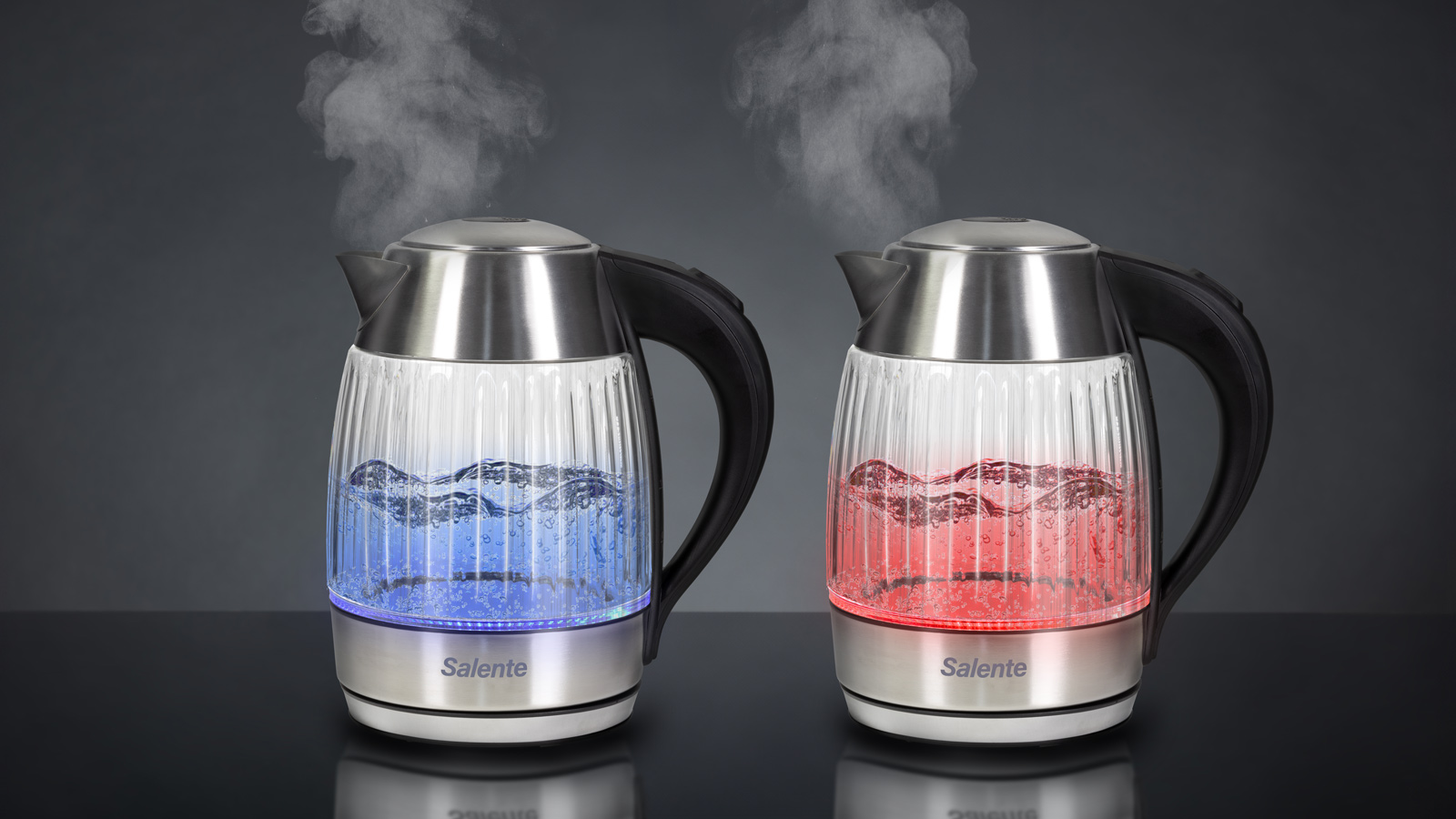 Salente StripeGlass, rychlovarná konvice 1,8 l, nerez/skleněná, červené podsvícení
