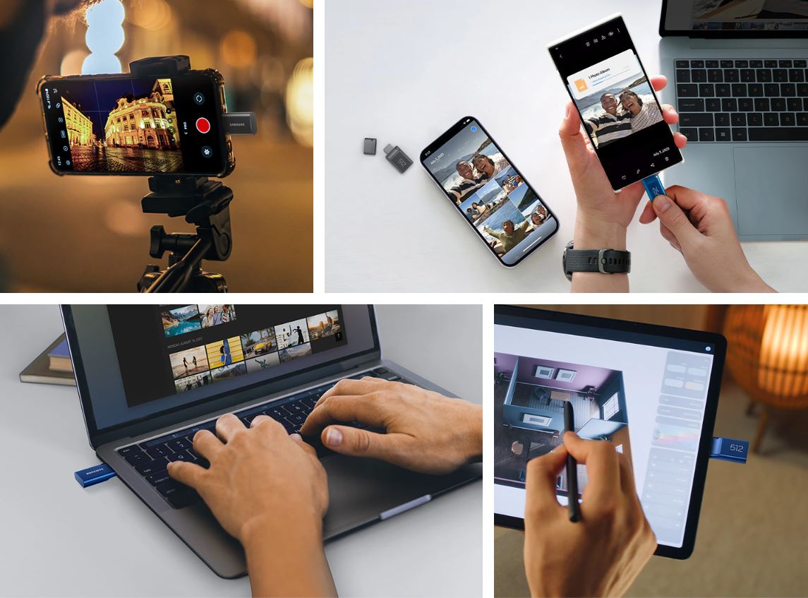 USB-C Flash Disk ti přináší flexibilní kapacitu úložiště v rozmezí od 64 GB do 512 GB (dle vybrané varianty), což ti umožní podle potřeby ukládat libovolný obsah – od videí z cest, graficky náročných prezentací až po hudební playlisty nebo oblíbené filmové tituly. Model s kapacitou 512 GB dokáže pojmout až 170 251 fotografií nebo až 24 h videí v rozlišení 4K.