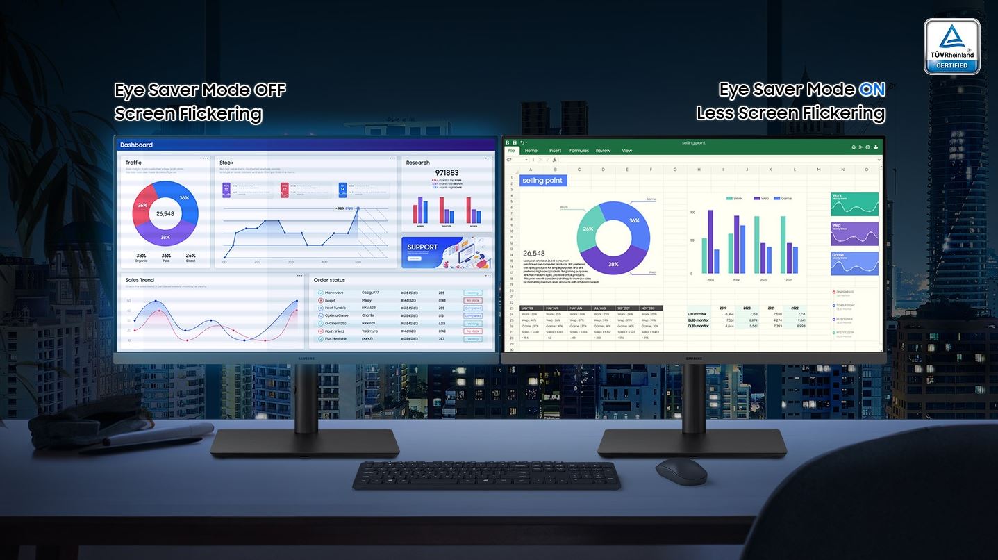 Sleduj svůj oblíbený obsah bez únavy očí po dlouhé hodiny. Pokročilá technologie certifikovaná organizací TÜV snižuje namáhání zraku minimalizací vyzařovaných paprsků modrého světla a omezuje nepříjemné blikání obrazovky.