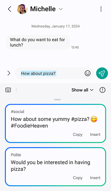 Přidej ke svým zprávám další vrstvu vyjádření prostřednictvím funkce Textový asistent. Funguje v e-mailu i na sociálních sítích, aby chatování bylo rychlé a zábavné!
