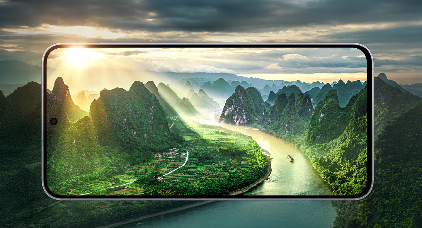 Galaxy S25 FE tě okouzlí 6,7" FHD+ displejem s obnovovací frekvencí 120 Hz, který tě připoutá k obrazovce. Minimalistický rámeček a vysoký jas podpořený funkcí Vision Booster ti rozšíří obzory a představí ti strhující obsah se všemi detaily.
