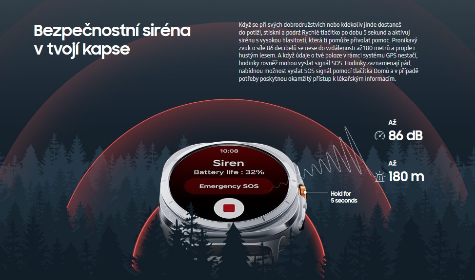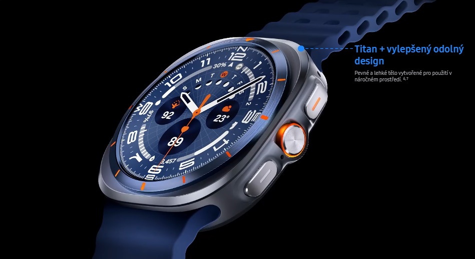 Vytvořeny tak, aby posouvaly hranice, hodinky Galaxy Watch Ultra dokáží vydržet teplotu až 55°C, nadmořskou výšku 9 000 m, tlak vody 10 ATM a při tom všem si udržují stabilní chod díky novému 3nm procesoru. Vydej se na delší cestu s baterií, která zajistí výdrž až 100 hodin v úsporném režimu. Nový BioActive Sensor neustále sleduje důležité zdravotní ukazatele a umělá inteligence Galaxy AI přinese cenné poznatky, které ti umožní hravě překonat všechny limity. Nyní dostupné v barvě Titanium Blue — odstínu, který zosobňuje odolnost a je připravený vydat se s tebou kamkoliv